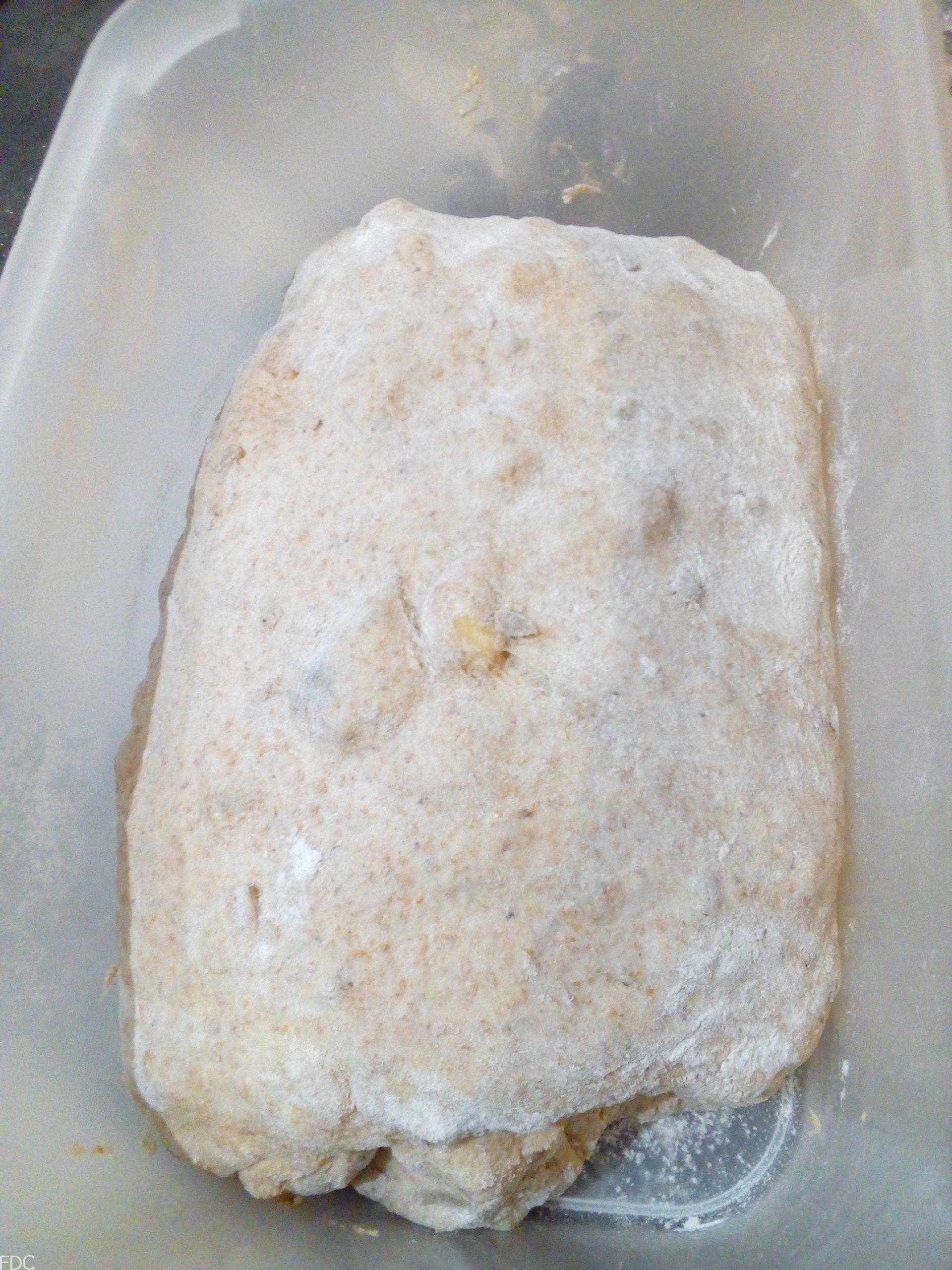 Mettez votre pâte dans une bassine ou plat rectangulaire, couvrez d’un linge humide et laissez pointer la pâte 2h45 en faisant éventuellement un seul rabat croisé au bout de 45 minutes environ.