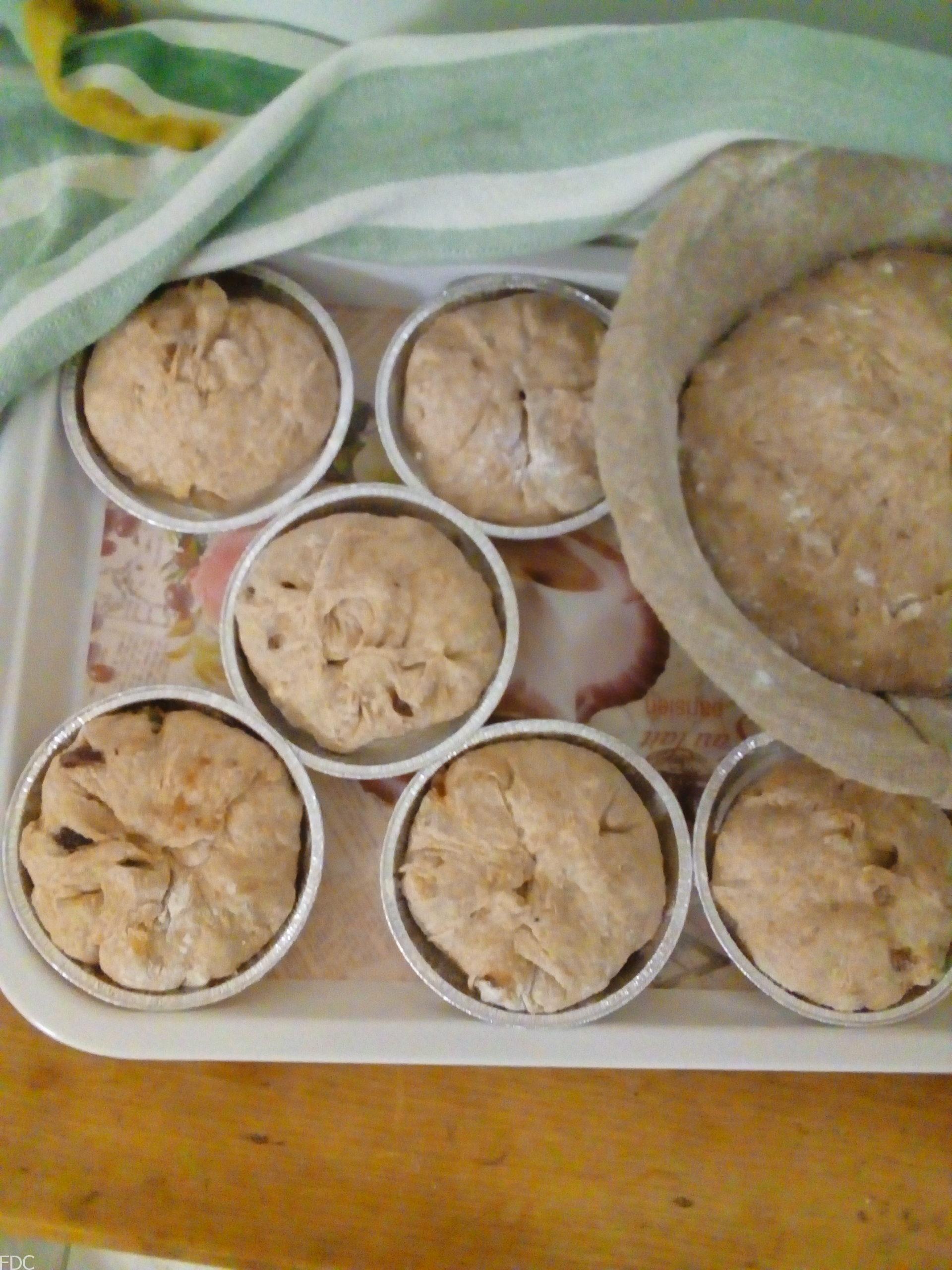 Façonnez le reste comme vous le souhaitez. Pour faire mes michettes, j’ai utilisé des moules à tartelettes mais vous pouvez laissez sur un plateau avec un linge légèrement fariné et former des gouttières pour faire des mini pains allongés (navettes).
