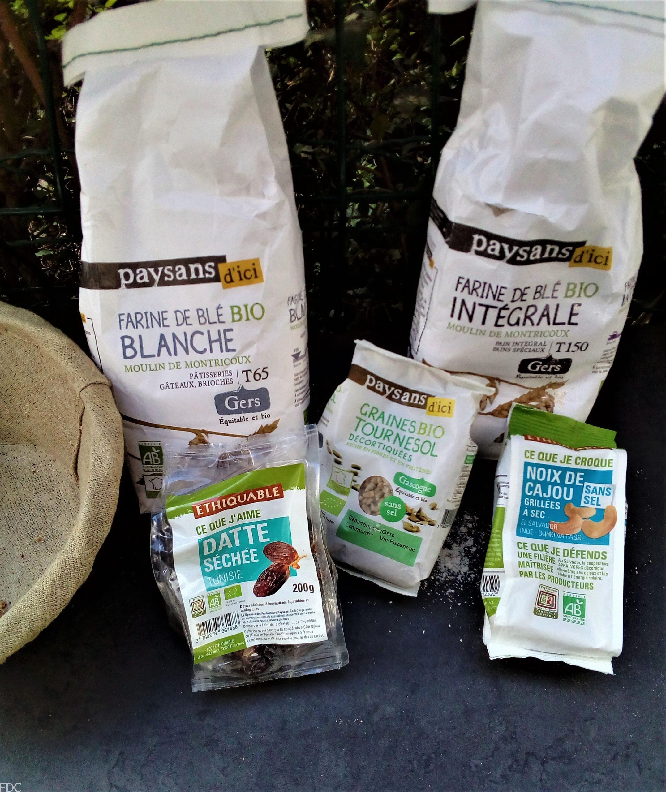 Pour ce pain tous les ingrédients proviennent de la maison Ethiquable. Ils sont Bio et équitables.