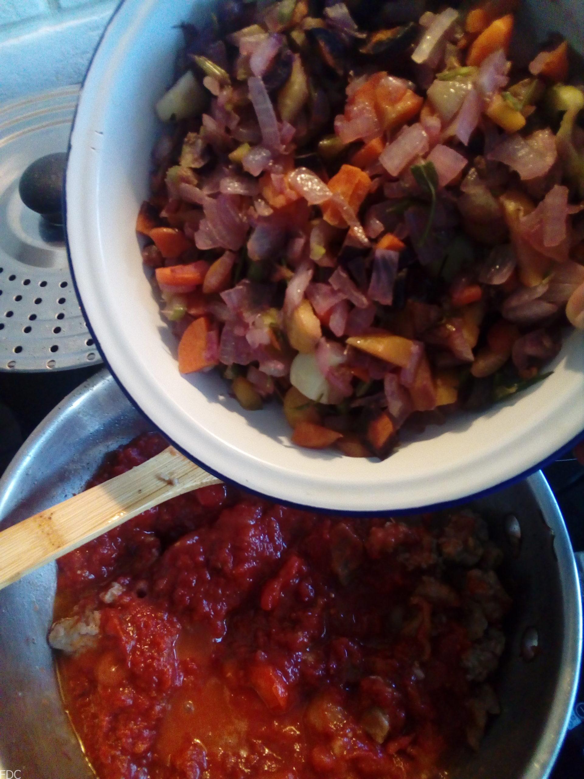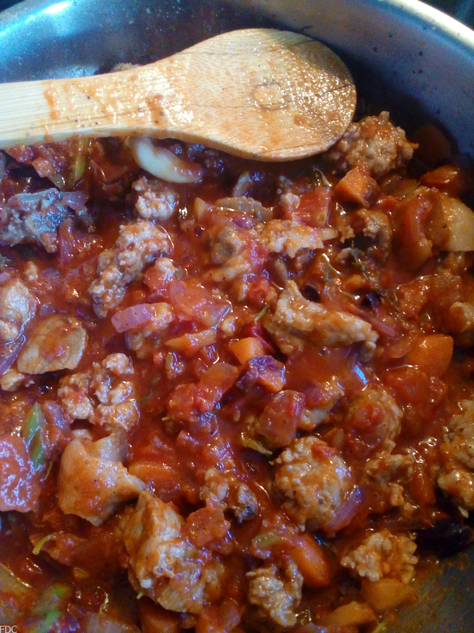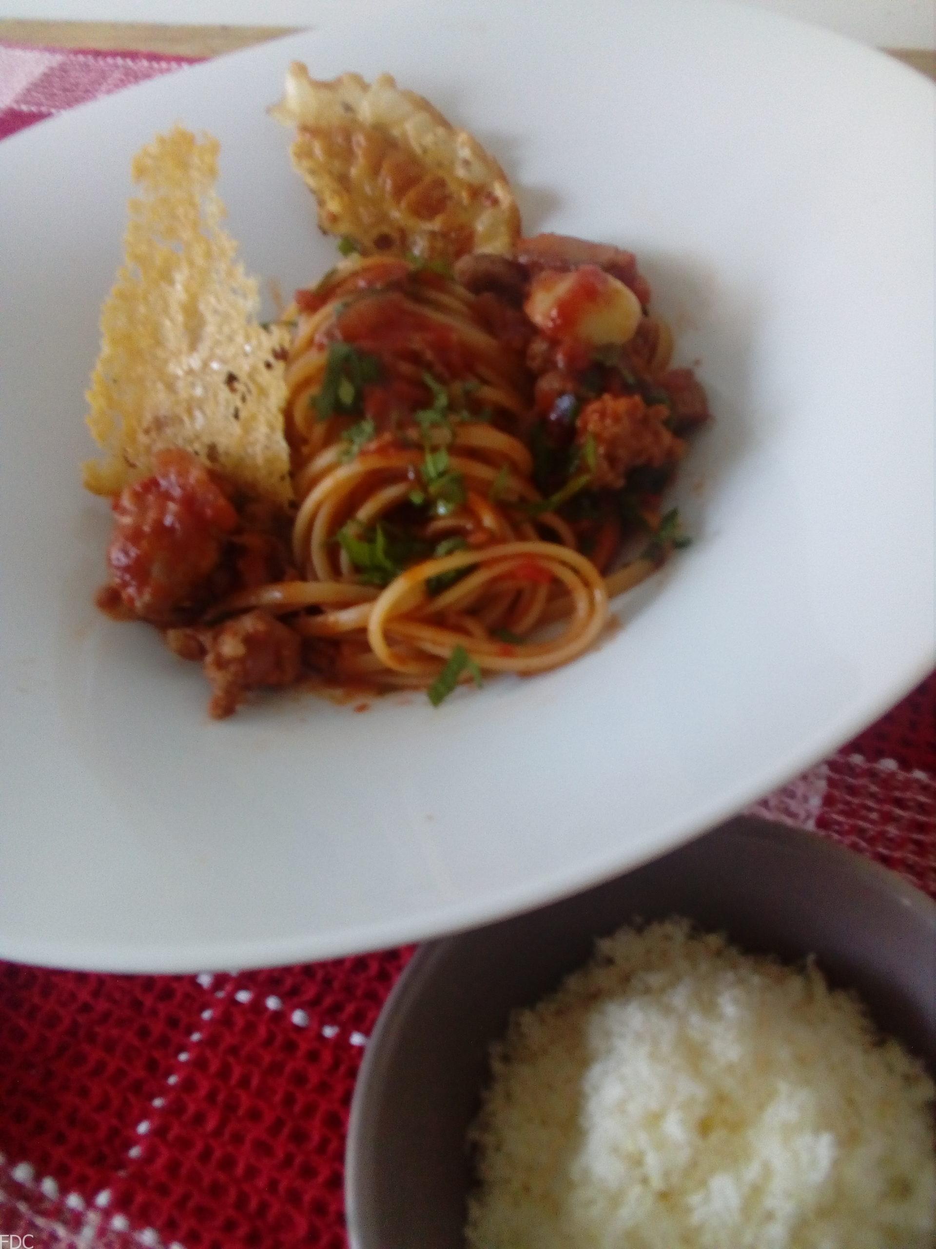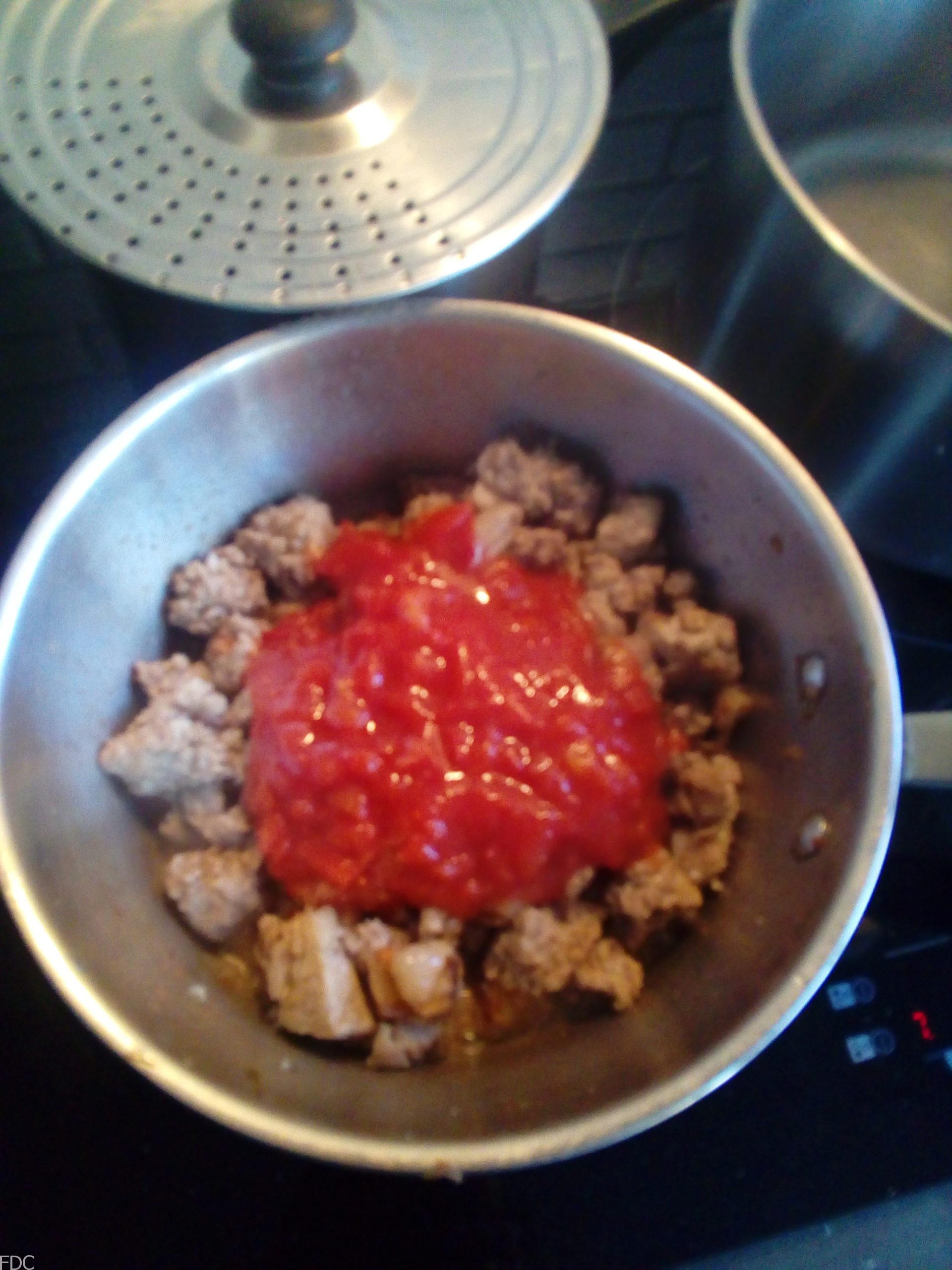 Pour moi cette recette s’appellera la Pasta Choute. La base est constituée de viande en sauce « ragù » en Italien de Bœuf, Veau ou Porc selon les régions, familles et niveau social. C’est-à-dire une recette par famille.