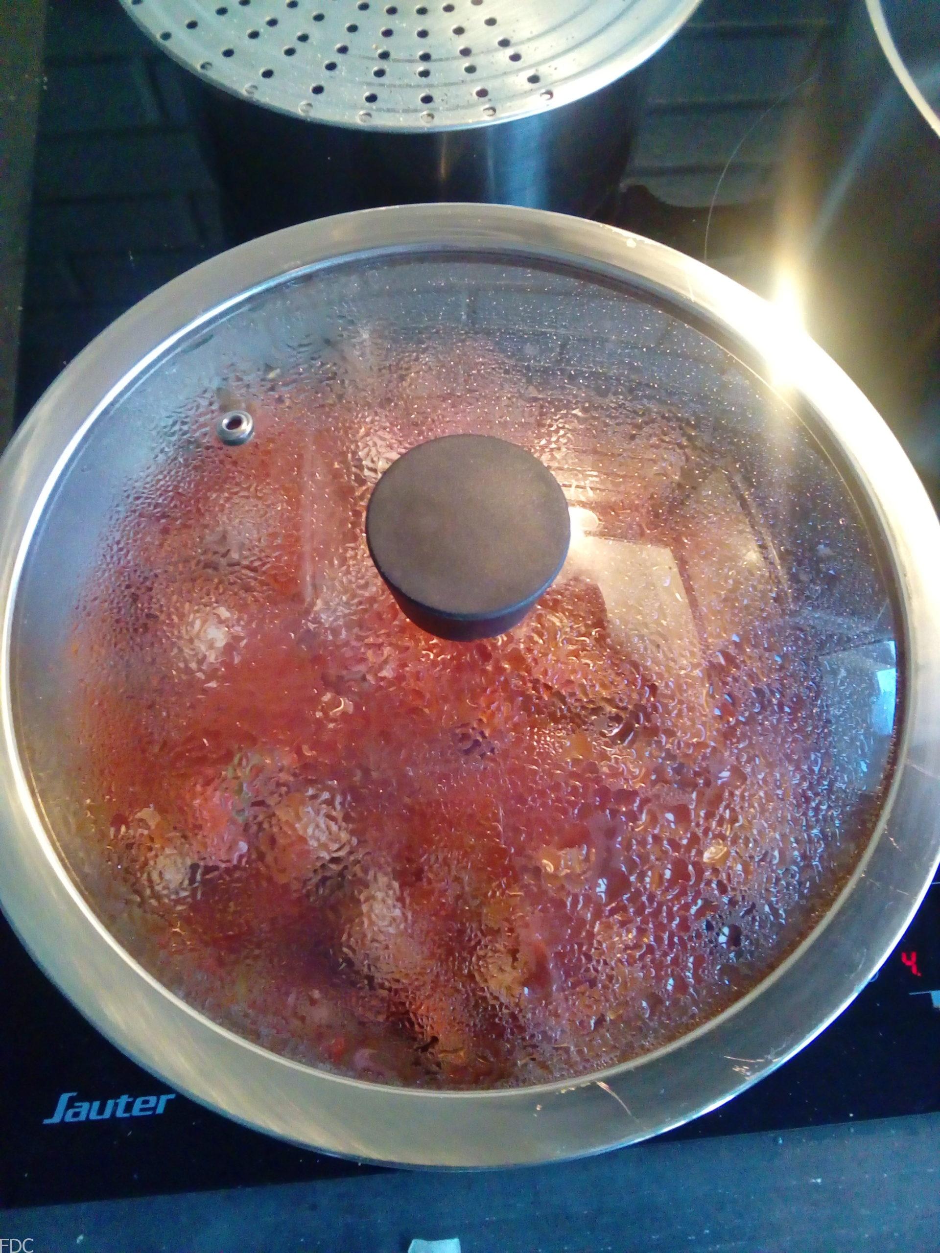 Ma version comporte trois morceaux différents dans le porc. La chair à saucisse, l’échine et du lard gras Italien Colonnata. Le reste de la composition dépend de la saison notamment pour la tomate. Fraîche en saison ou pulpe en boite de qualité en hors saison.