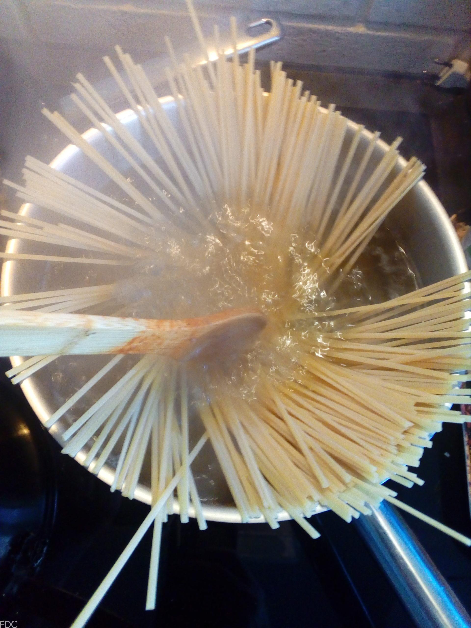 Plongez vos linguines dans l’eau bouillante et remuez en tourbillon durant les 3 premières minutes.