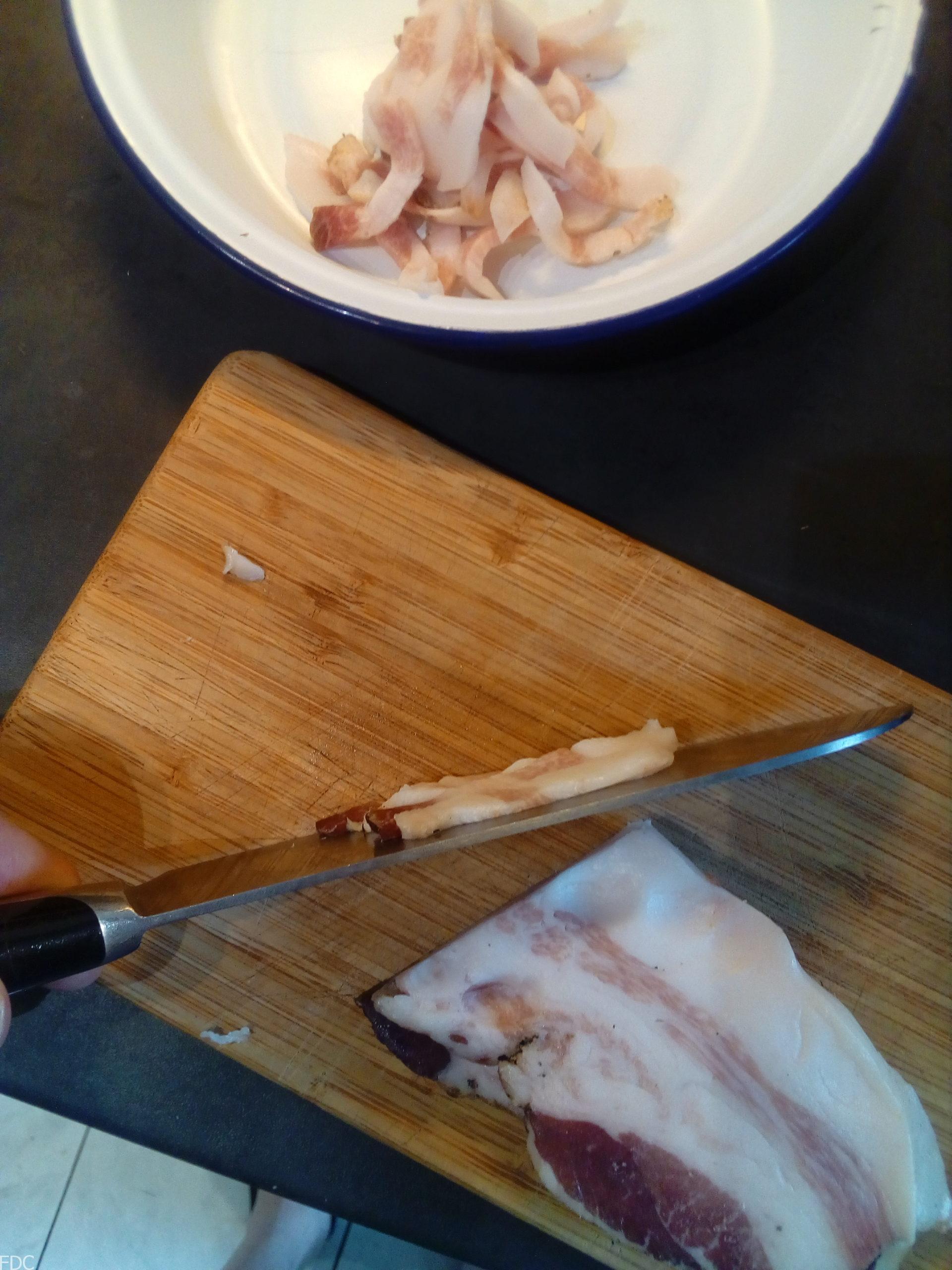 Préparation du Guanciale et Poivre à concasser
