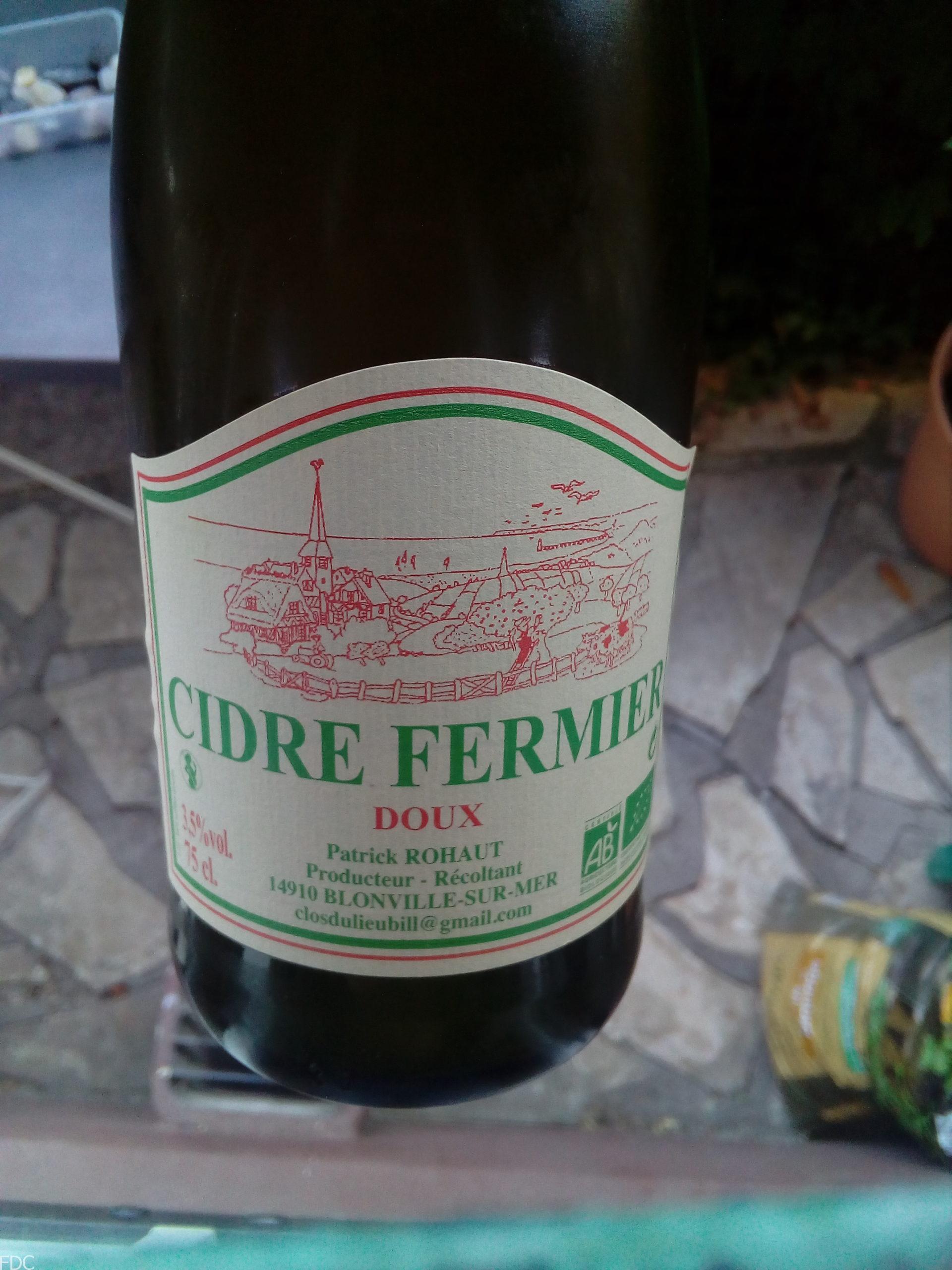 Cidre bio fermier : 10 cl ou jus de pommes ou pommeau (3 cl).