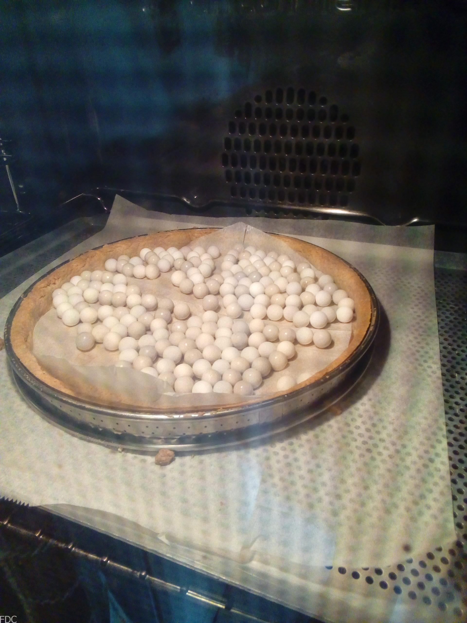 Mettez dans le fond une feuille de cuisson et des billes de cuisson.