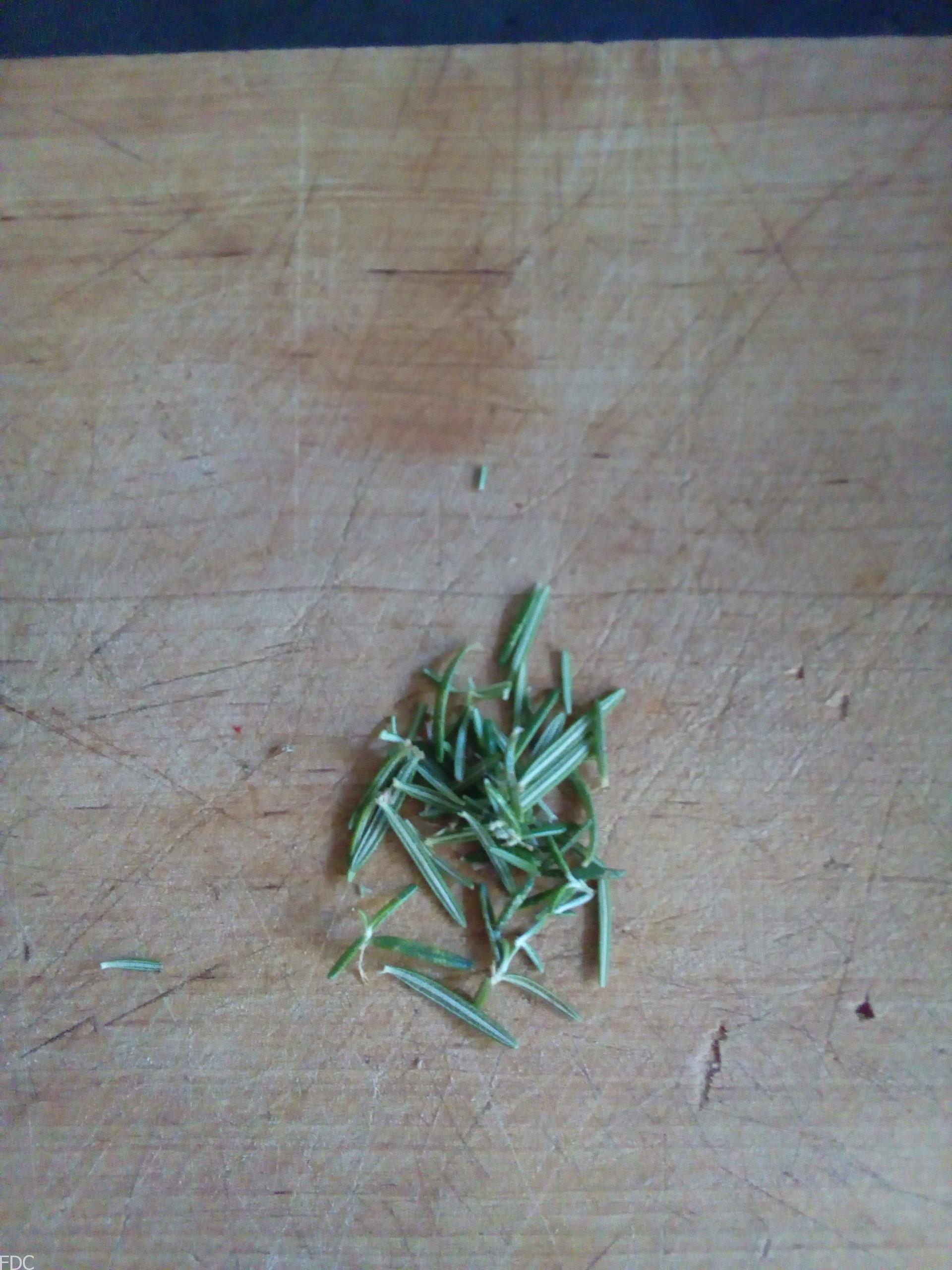 Commencez par mettre en cuisson votre compote de quetsches dénoyautées avec le romarin effeuillé et haché grossièrement.