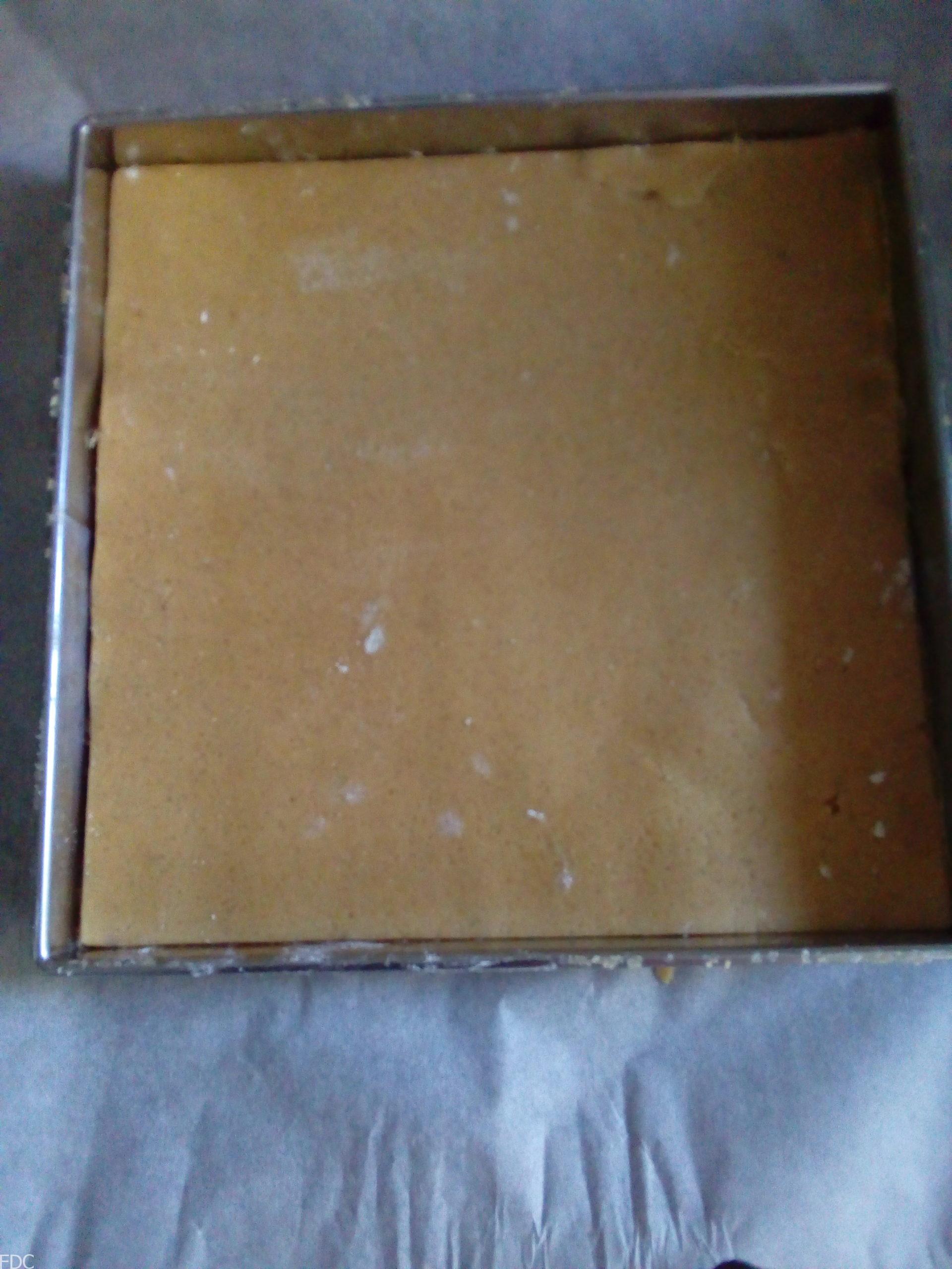Un fois cuit, sortez votre fond de pâte, débarrassez sur une grille en laissant le papier de cuisson et laissez refroidir.