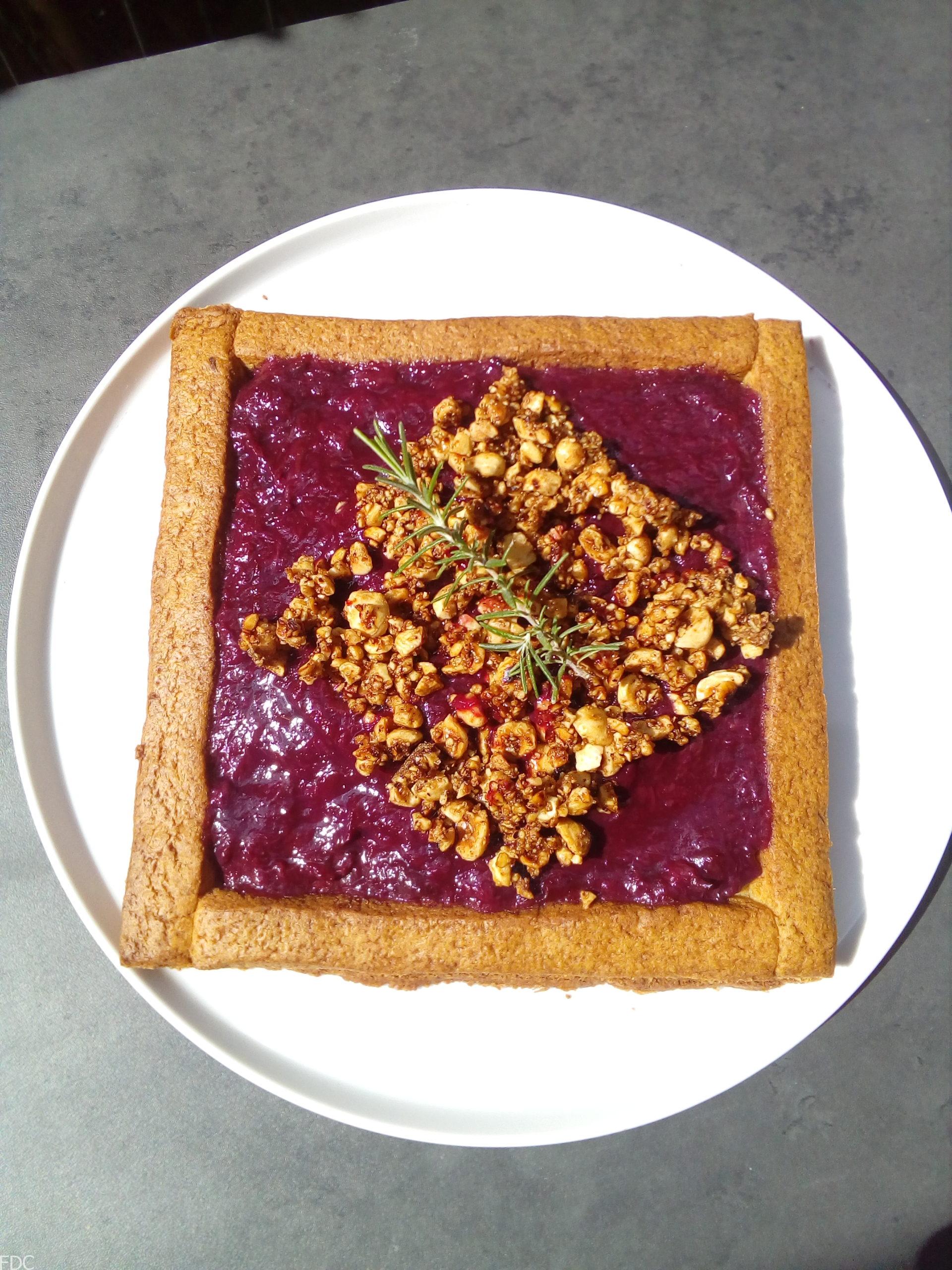 Tarte aux quetsches, romarin et noisettes caramélisées