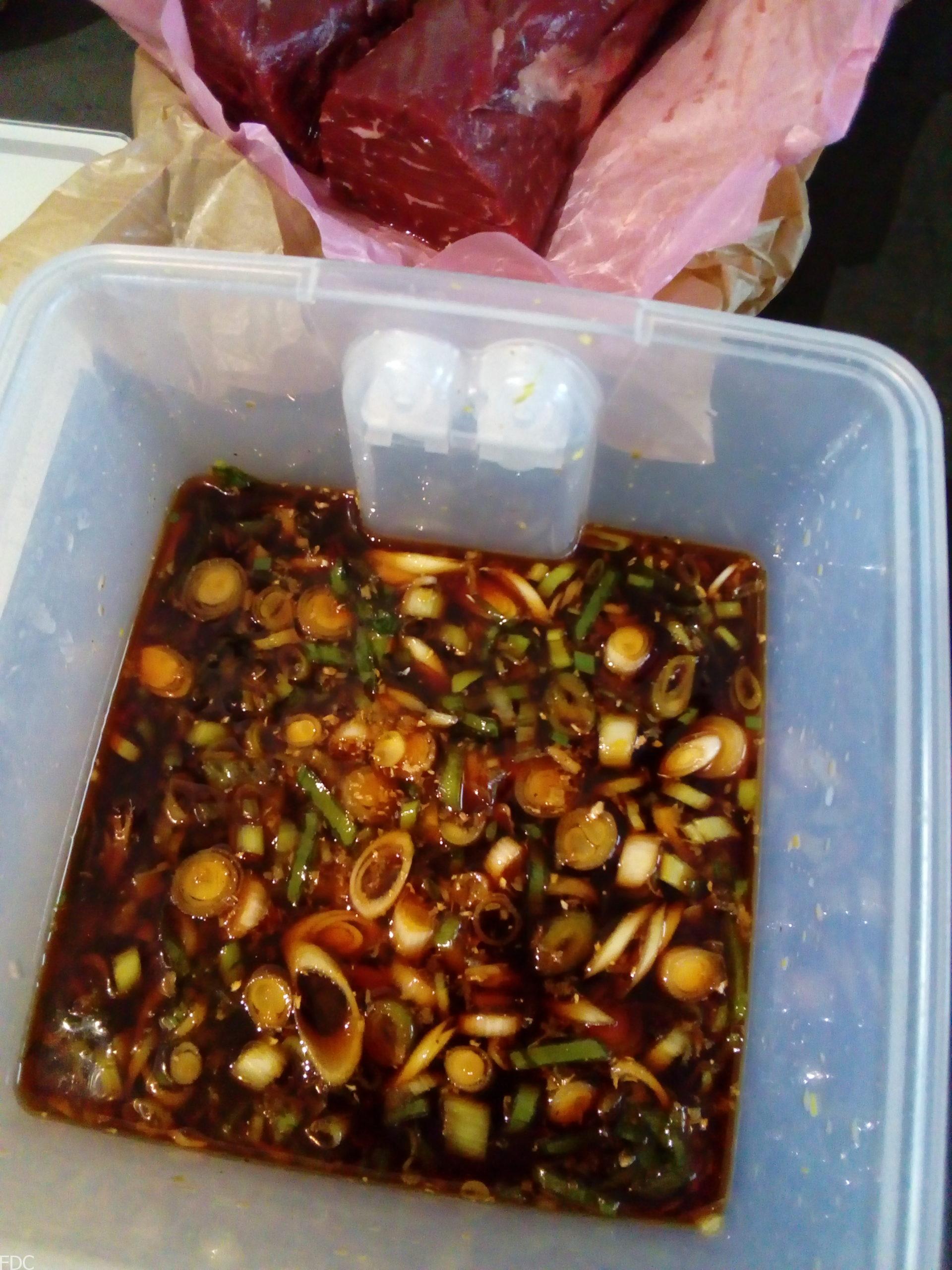 Goutez et ajoutez un peu de poivre si vous souhaitez relever le tout. Attention les ingrédients vont infuser et se renforcer en goût au fil des heures. Mais vous pouvez ajuster le saké même si la marinade doit avoir un fort goût salé. Une fois la marinade revenue à température ambiante, plongez-y les morceaux de viandes, couvrez et mettez au froid pour au moins deux ou trois heures.