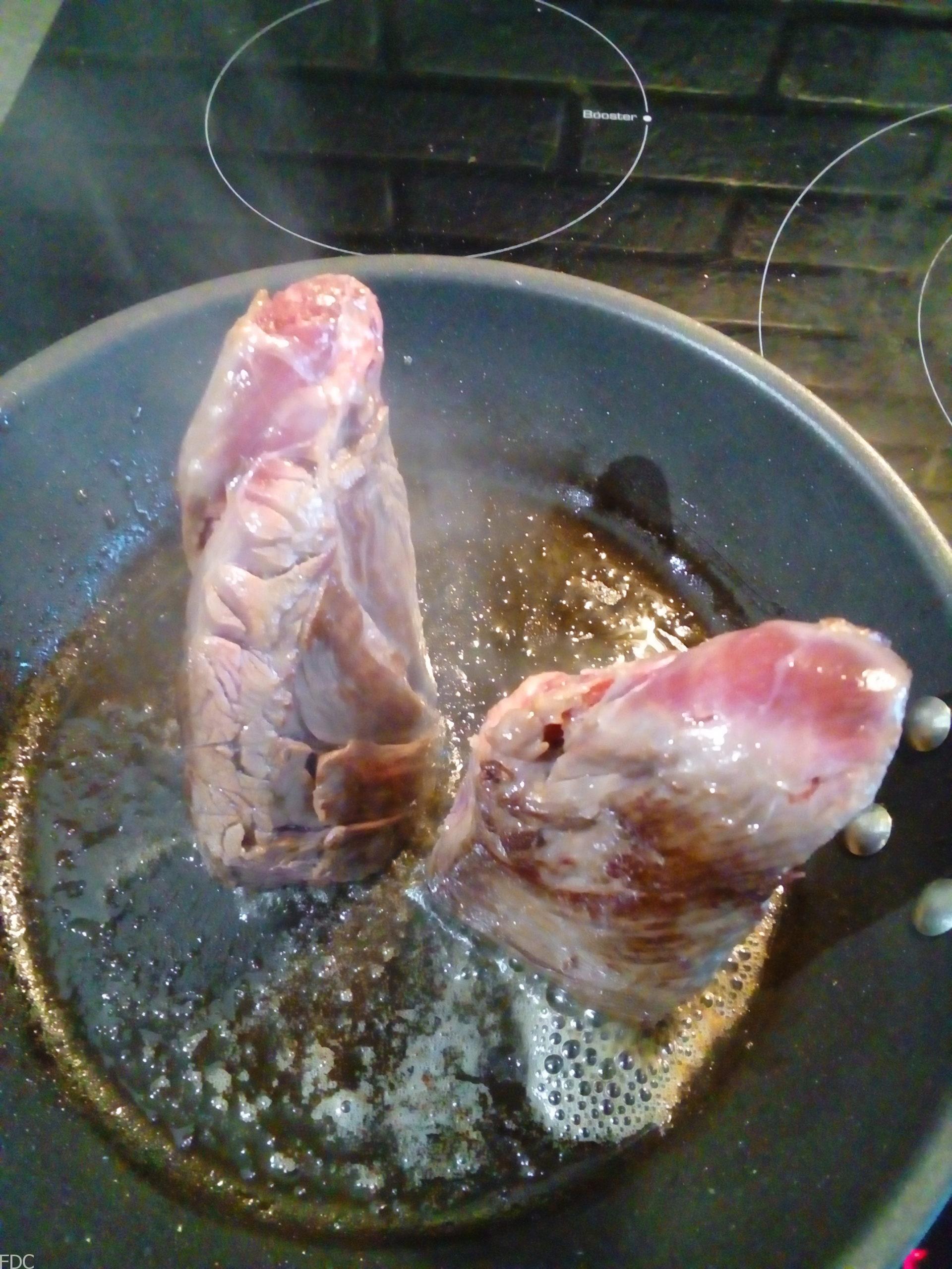 Dans une poêle chaude mais pas trop et avec de l’huile de sésame, marquez votre viande sur tous les côtés sans la ferrer. Une fois qu’elle est bien maquée, débarrassez et laisser refroidir pour qu’elle se détende.