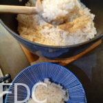 Mettez la sauce soja, le Mirin, le saké. Faites chauffer dans une casserole jusqu’à frémissement et stoppez.